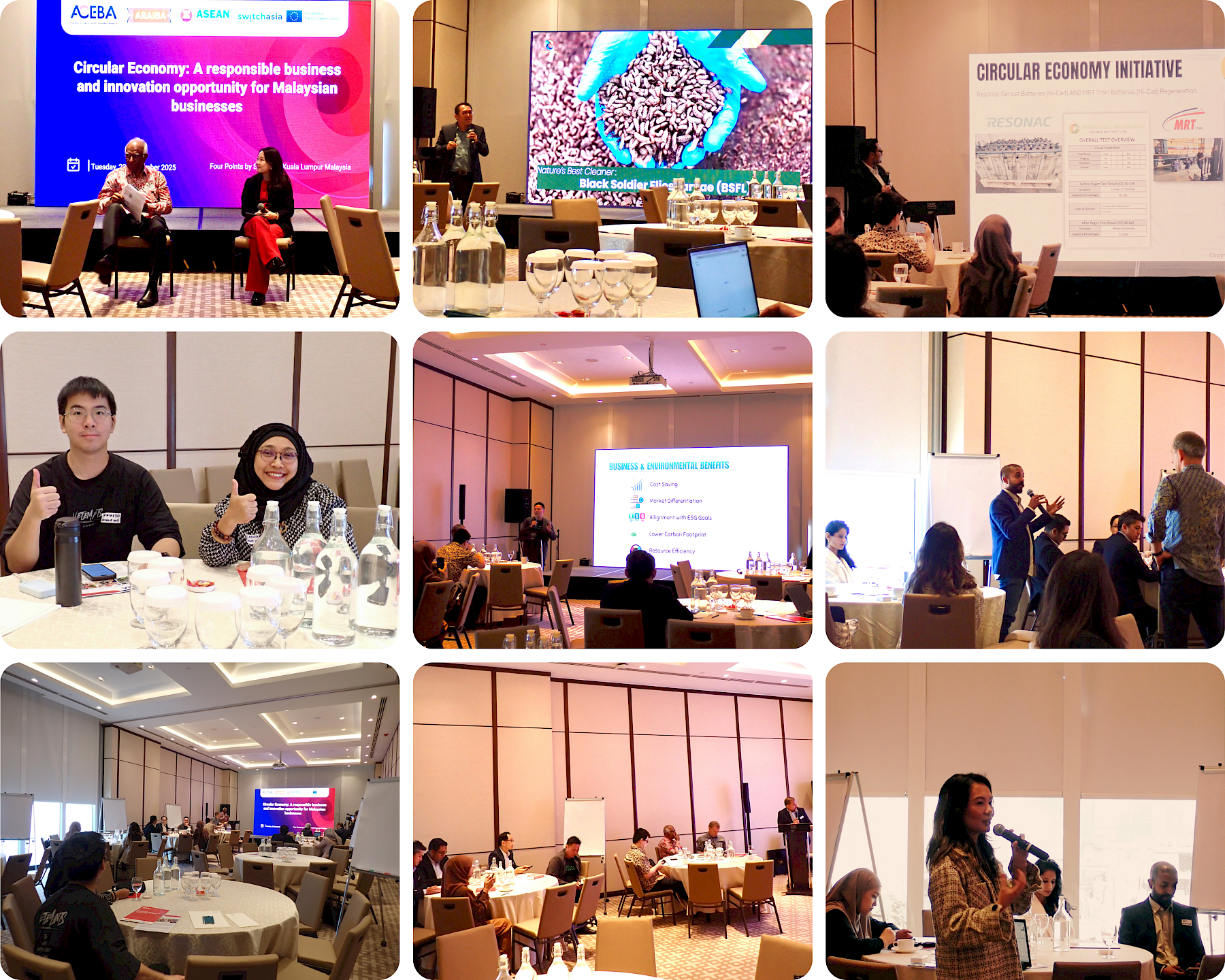 The Malaysia Workshop of the ASEAN Circular Economy Business Alliance (ACEBA), held at Four Points Chinatown Hotel in Kuala Lumpur on 23 September 2025, brought together industry leaders, policymakers, and key stakeholders to explore the growing importance of circular economy (CE) practices in Malaysia and the business opportunities this presents. The event, organized by the ASEAN Circular Economy Business Alliance (ACEBA), was supported by the EU SWITCH-Asia Policy Support Component (PSC).