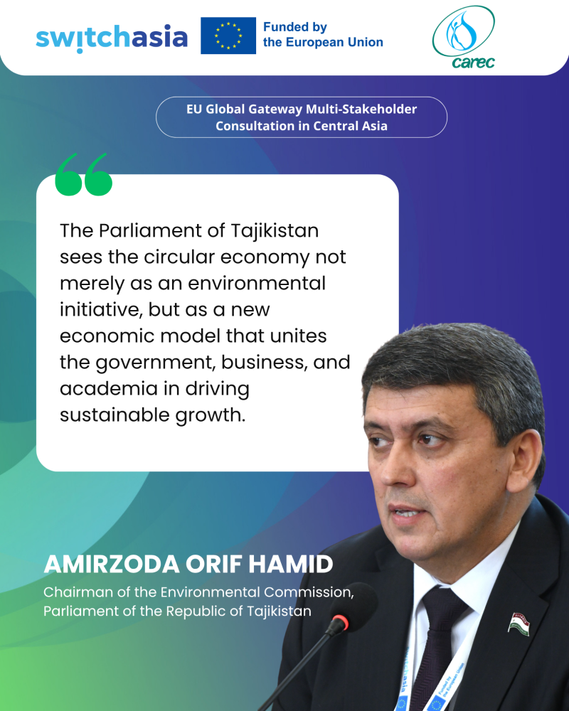 “The circular economy is not only about waste reduction — it is about re-designing how value is created, shared, and sustained across societies. Through SWITCH-Asia, we are connecting Central Asia’s leadership and innovation with the EU’s Global Gateway to build resilient, inclusive, and circular economies that work for both people and the planet”.